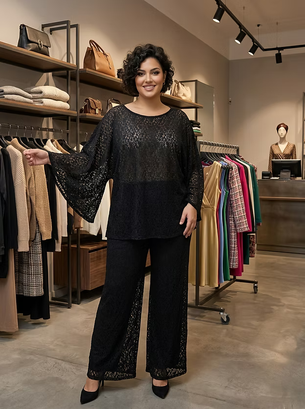 Spitzenoberteil mit Fledermausärmeln